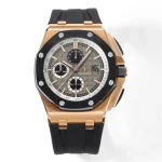 Audemars Piguet Royal Oak Offshore Chronograph Watch in Rose Gold with Black Rubber Strap and Grey Dial